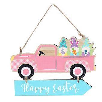 Happy Easter Hanging Ornaments Gnome Truck Carrot Pendant Sign for Front Door Wall Easter Home Decoration