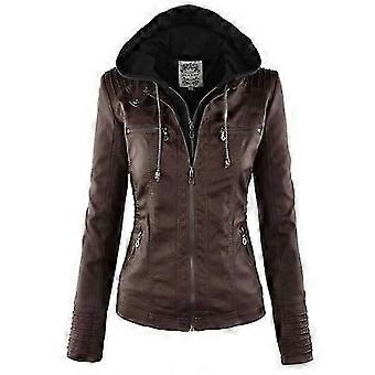 Gotisk Faux Läderjacka Kvinnor Hoodies Vinter Höst Motorcykeljacka Svart Ytterkläder Faux Läder Pu Basic Jacket Coat