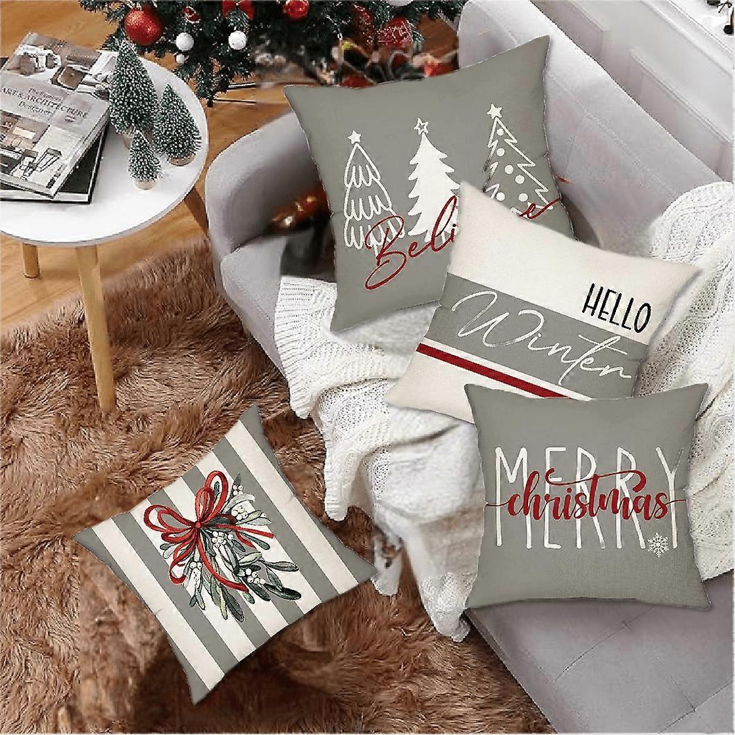 Gray Christmas Pillow Covers Decorations Indoor Home Decor 18 x 18 Set of 4 - Xmas/Holiday/Winter Bedroom Decorative Pillowcase for Couch, Bed