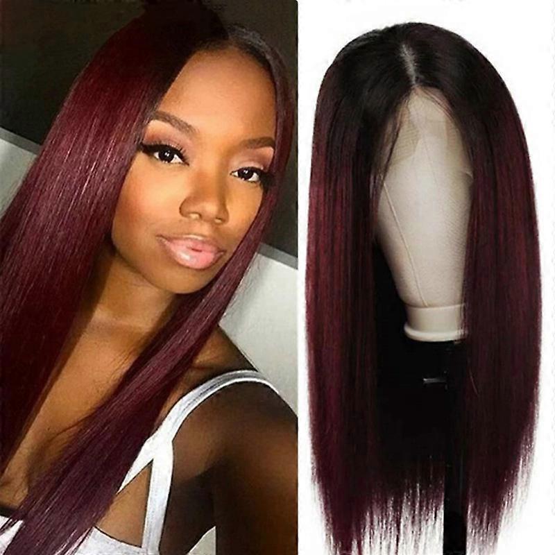 Gradient split wig female long straight hair