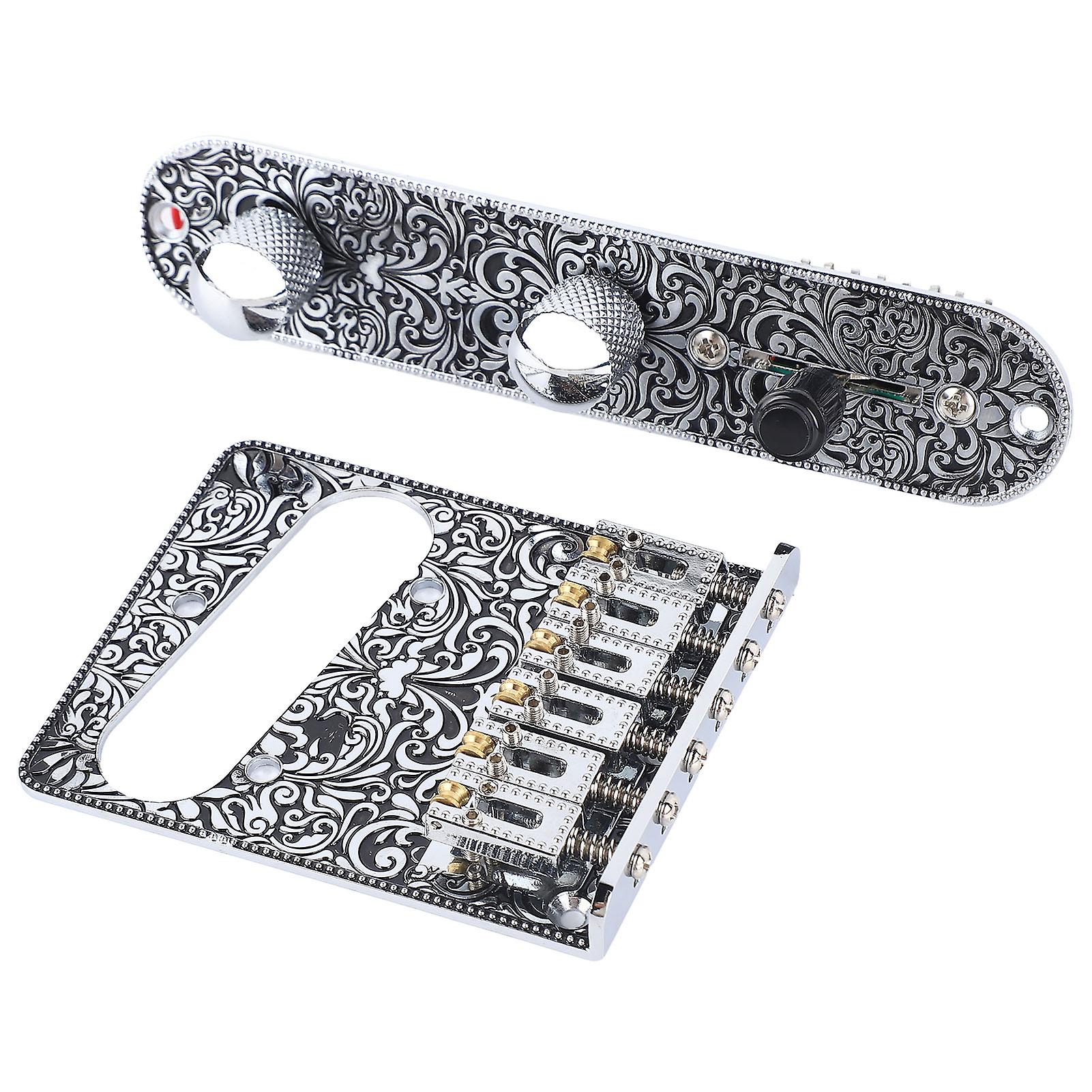 Engraved Electric Guitar Bridge Volume Control Plate Set Guitar Bridge Control Plate Kit for TL Silver