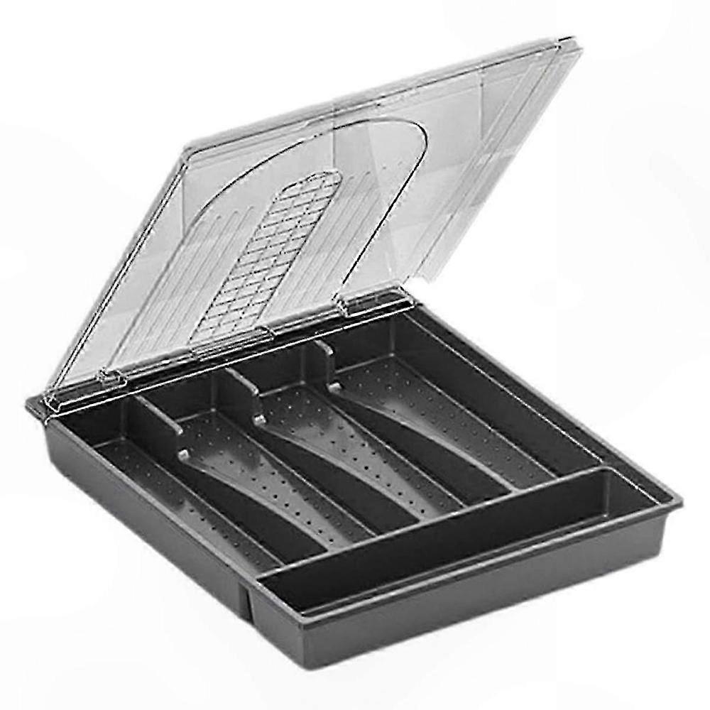 Gray Plastic Flatware Storage Container with Lid and 5 Compartments