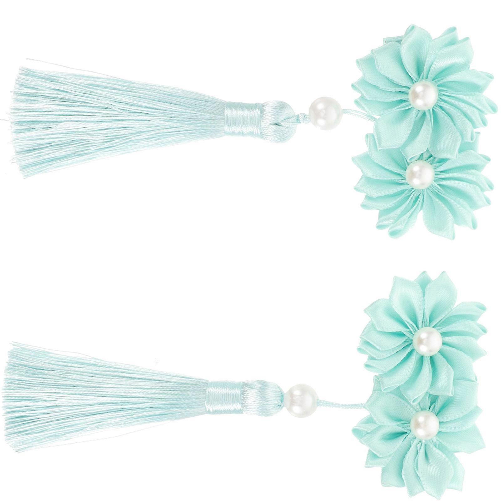 Green Cloth Flower Hair Clips with Tassels for Girls Elegant Chinese Style Hairpin for Decoration