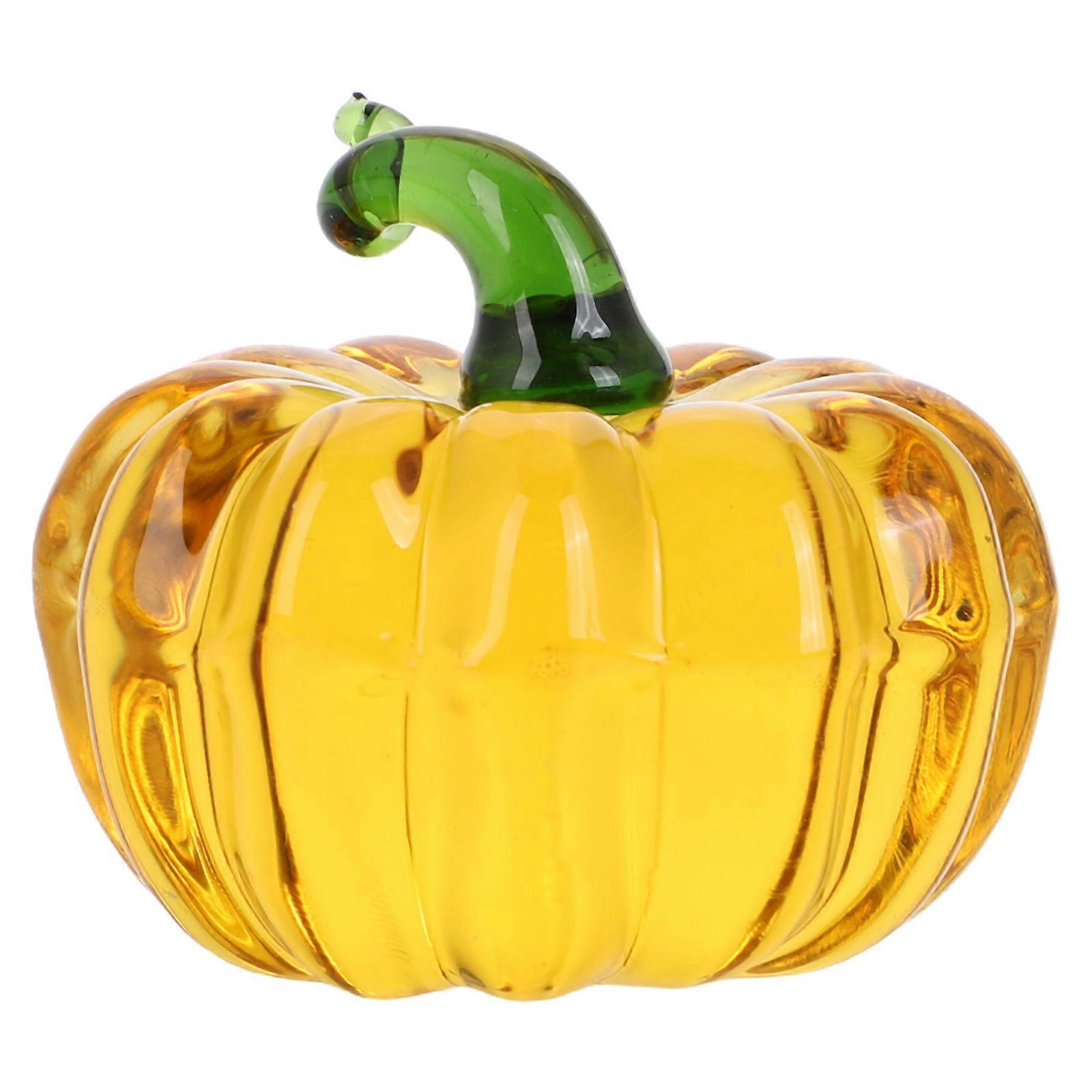 Yellow Crystal Glass Pumpkin Figurine for Students 3Pcs Paperweight