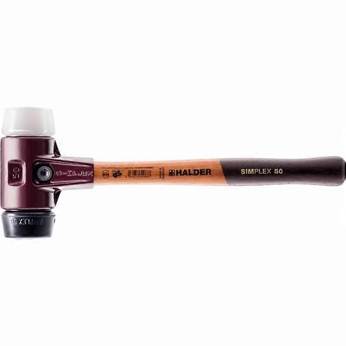 The Simplex 3027 HALDER mallet features a medium-hard rubber and plastic head and a two-piece cast steel housing. The wooden handle is screwed on and all parts are replaceable.