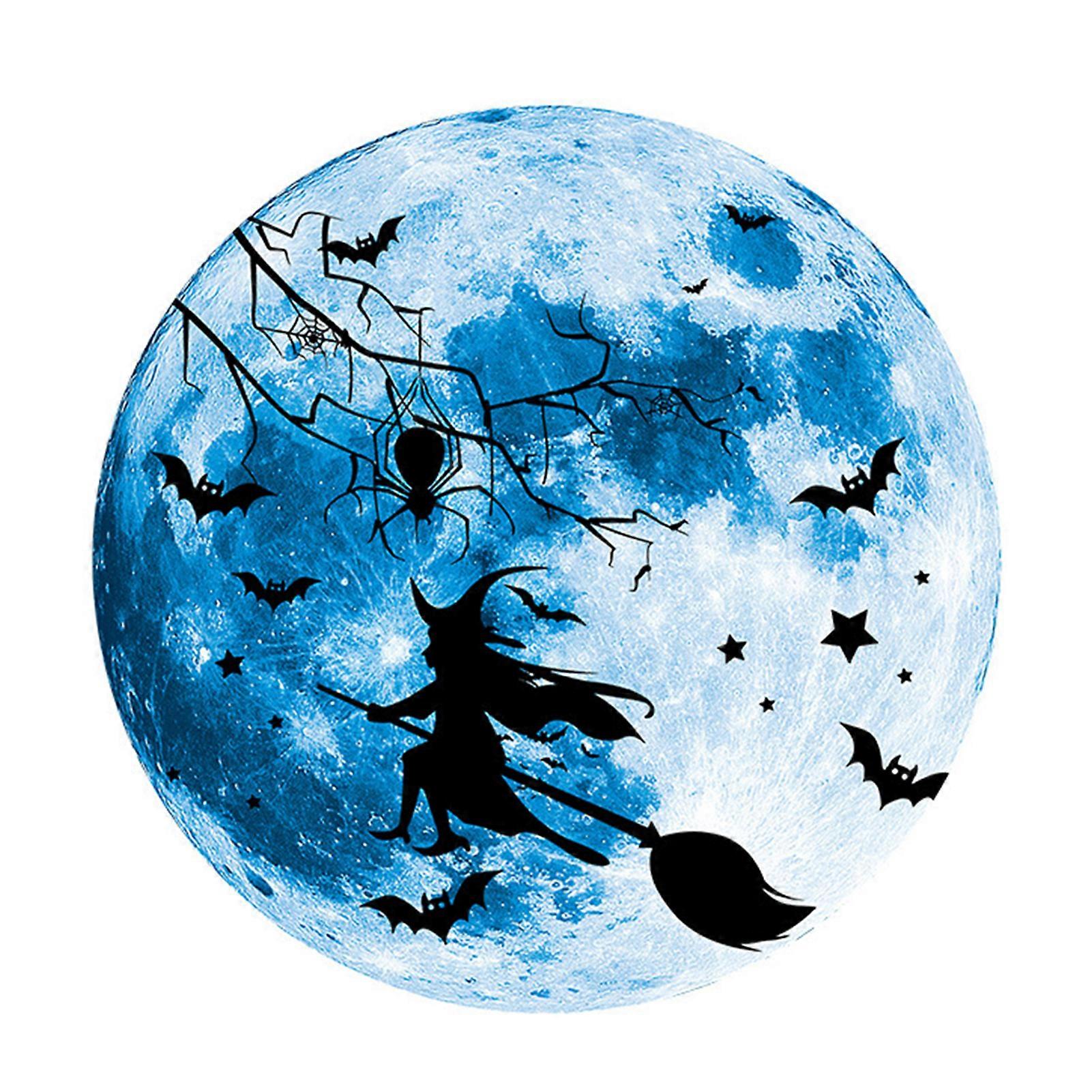 Halloween Moon Wall Sticker Glow in The Dark Witch Bat Spider Web Moon Sticker for Bedroom Window Wall Ceiling Decor