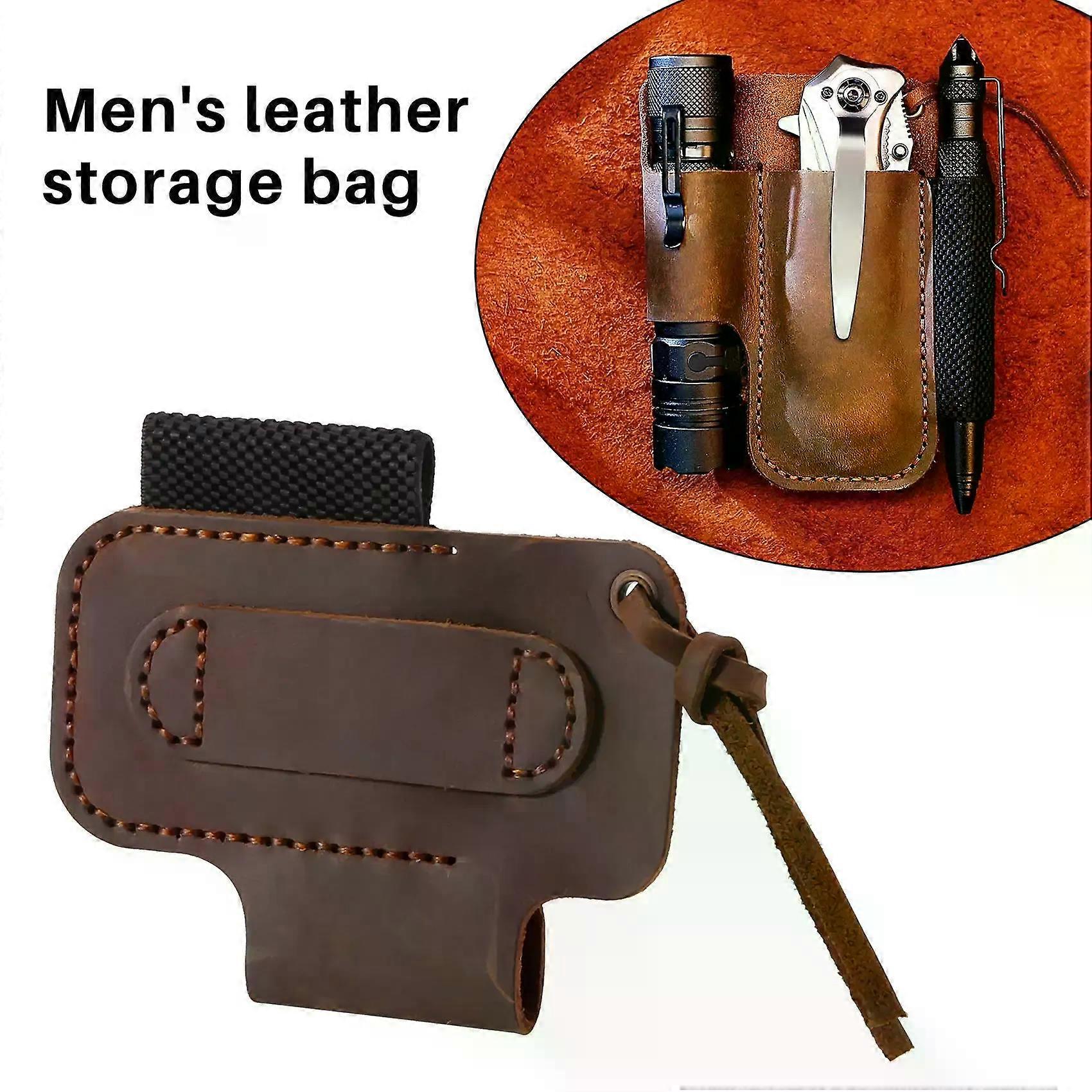 Handmade Leather Sheath Folding Knife Flashlight Holder EDC Tool Brown GSY