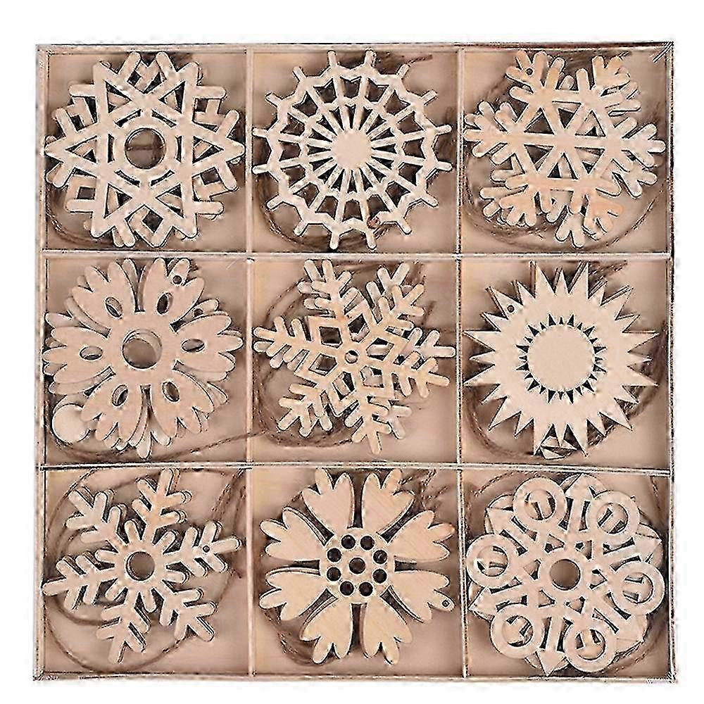 Handcrafted Wooden Snowflakes Ornaments For Rustic Christmas Tree Decoration, Natural Wood Lightweight Durable Blank Surface For Text Design