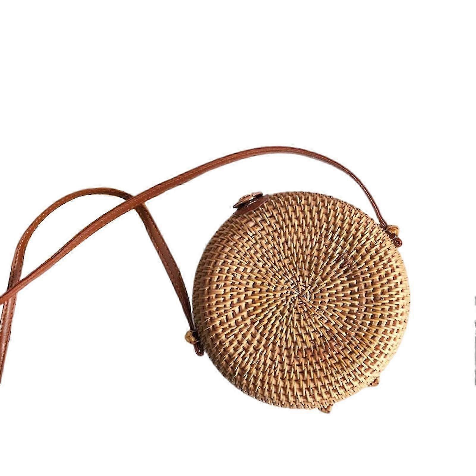 Handwoven Round Rattan Bag Retro Braided Straw Handbag Gift for Women Girlfriend Wife Daughter