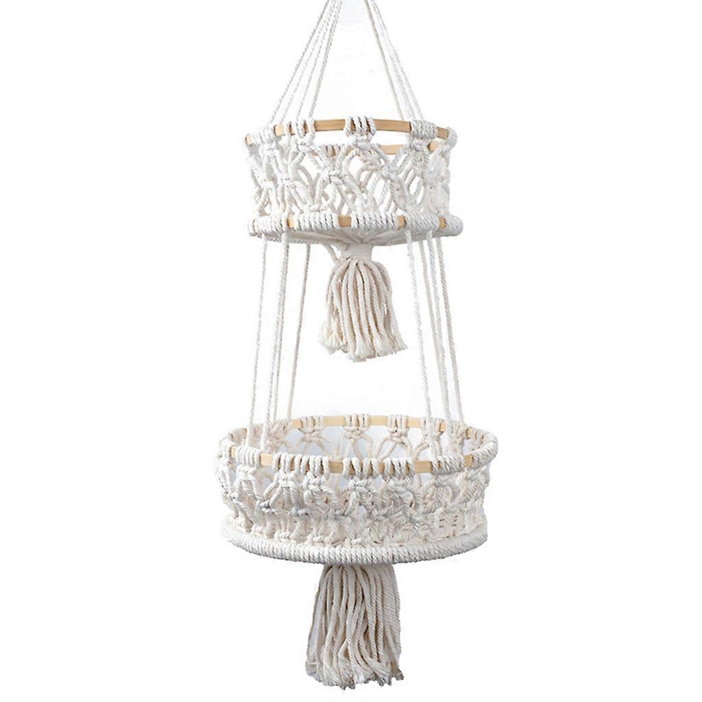 Hanging Fruit Basket 3 Tier Woven Cotton Rope Wall Baskets Kitchen Storage