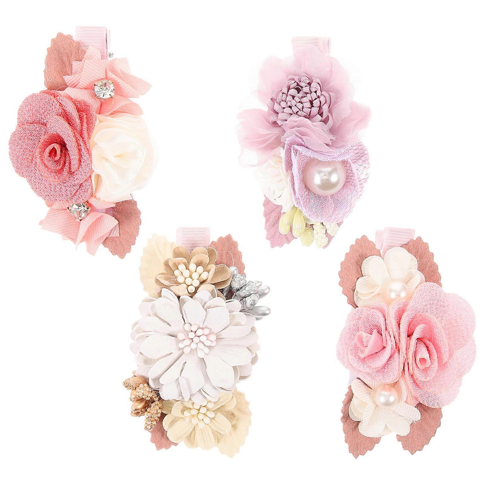 Hair Barrettes Flower Shape Decorative Lightweight For Weddings Spring Hair Clips 4Pcs