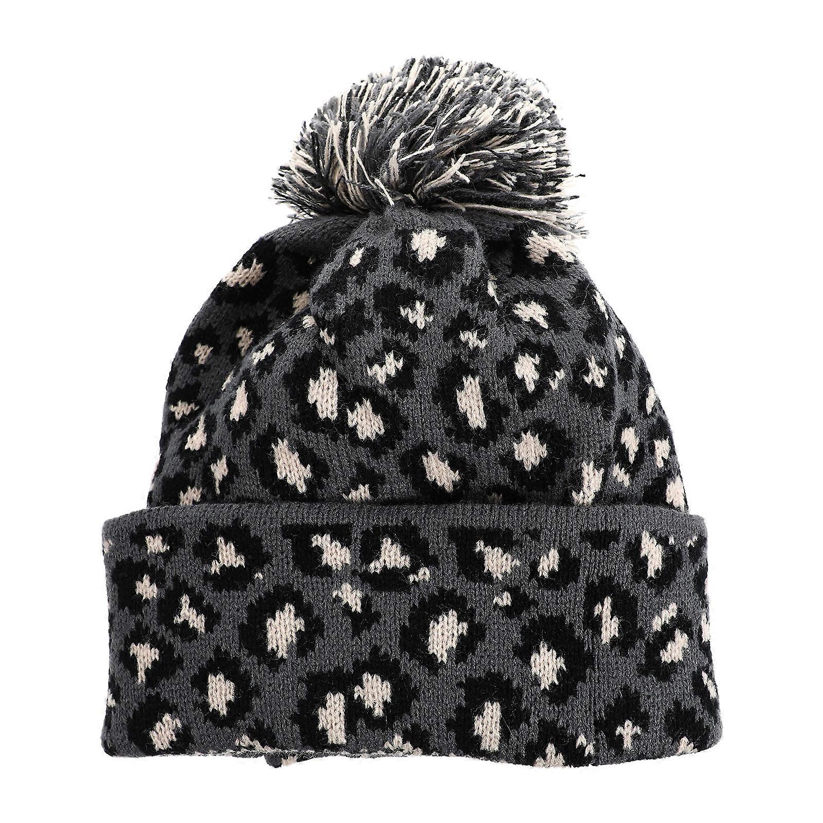 Hats Leopard Print Hat Warmth Retention Fashionable Appearance Round Shape Autumn Wear Black Color 1Pack