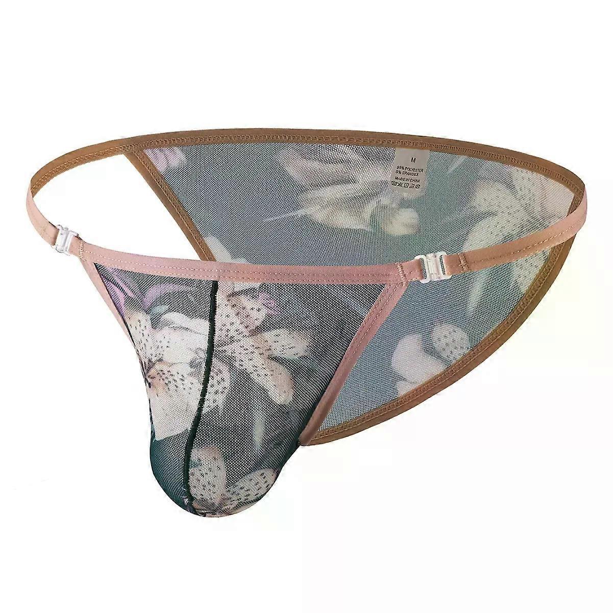 Men's Erotic Brief Printed Mesh Thin Transparent Quick Drying Breath Comfort Underwear Gays Low-rise U Convex Puoch Mankini