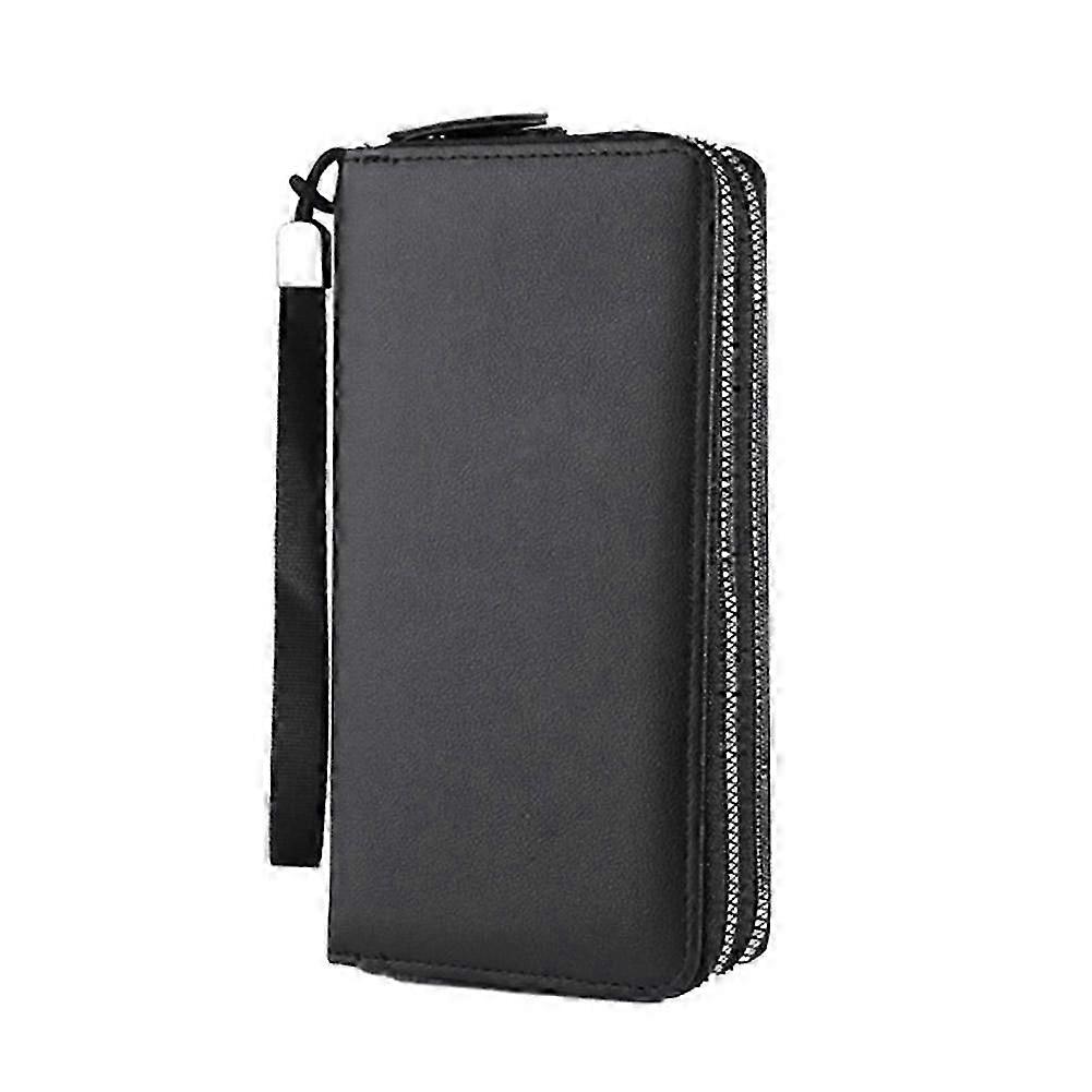 Men'S Leather Wallet Bifold Id Card Holder Checkbook Long Clutch Billfold Purse