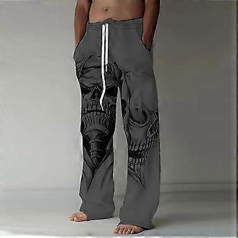 Herr Lös Casual Enfärgad Byxor Fierce Skull Tryckta Raka Byxor