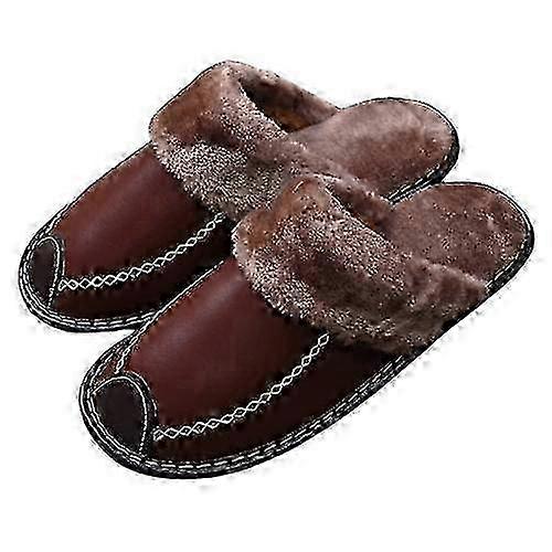Men Winter Leather Slippers Bedroom Cotton Slippers Male Waterproof Thick Plus Velvet Indoor Warm House Home Slippers Shoes