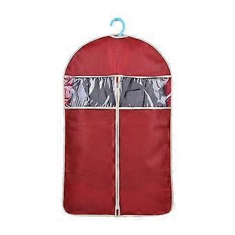 High-end Embossing Clothes Dust Cover Suit Dustproof Storage Bag Garment Organizer Protector Case Size M (Dark Red)