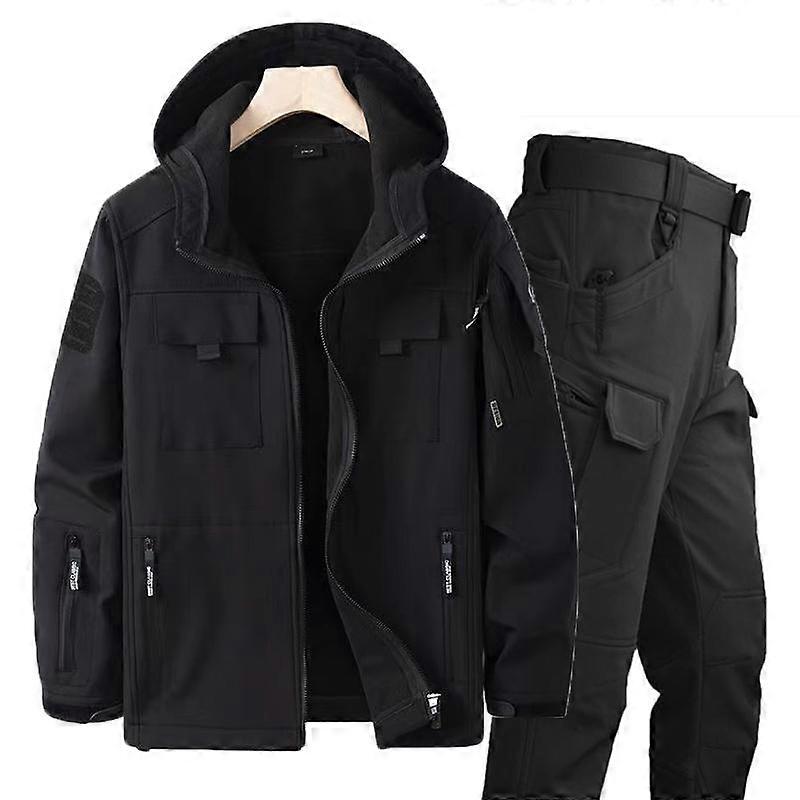 Autumn and Winter Plus Velvet Thickened Men's Windbreaker Outdoor Mountaineering Cold-proof Clothing Windproof, Waterproof and Warm Tooling Jacket Set