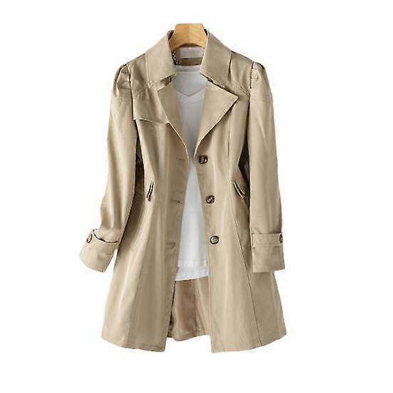Fall Spring Women Jacket Turn-down Collar Single-breasted Loose Overcoat Mid Length Solid Color OL Commuting Coat Hiking Windbreaker