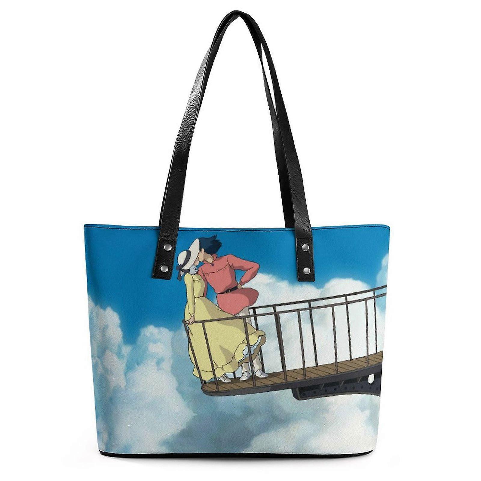 Howls Moving Castle Handbags Lady Sophie Falling Down Tote Bag Casual School Shoulder Bag Belt Print PU Leather Shopper Bags