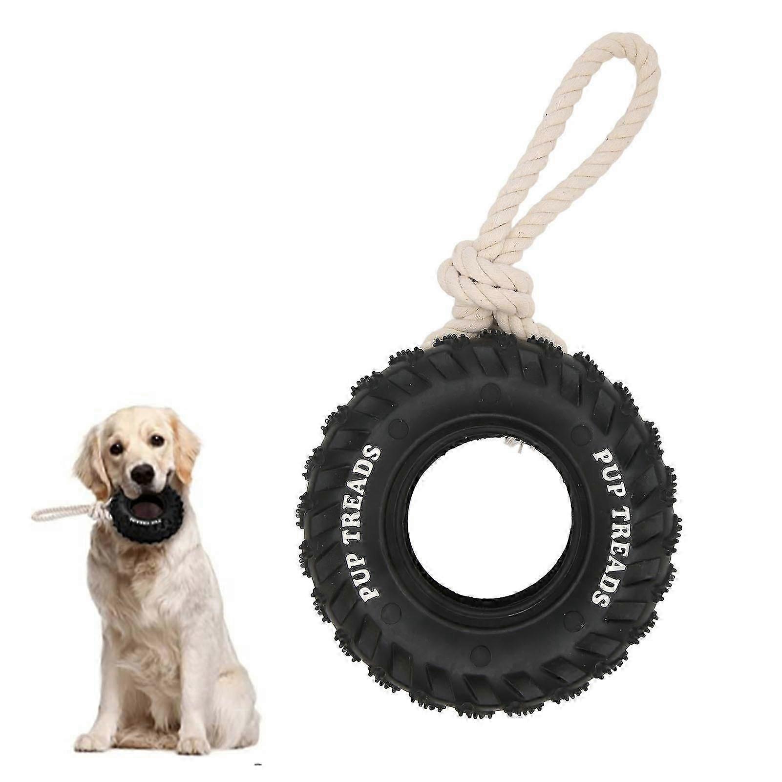 Dog Tire Chewing Toy Bite Resistant Treat Rubber Dog Toy with Rope