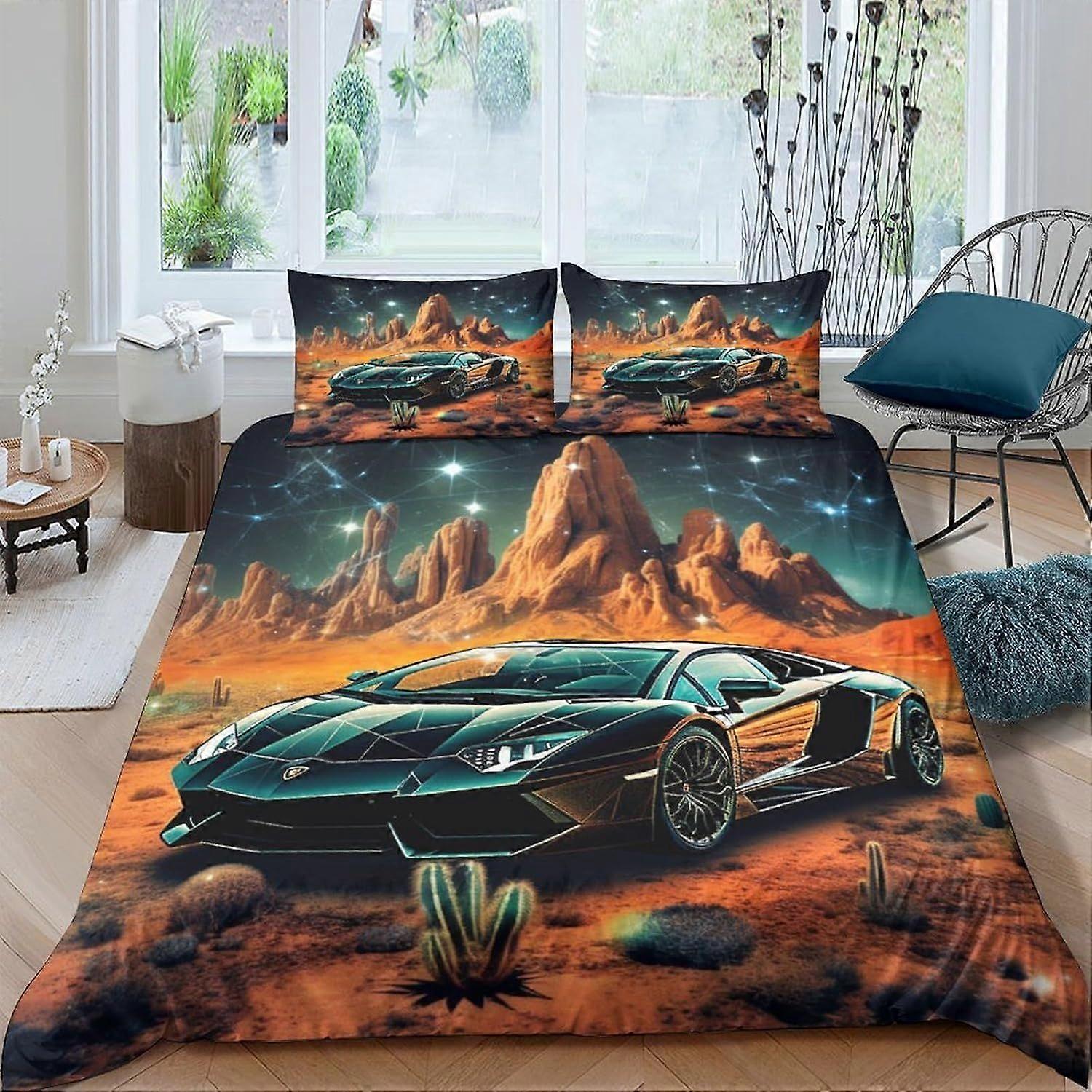 i367 Sports Car Duvet Cover 3 Piece Set Various Cartoon Characters Bedding Set for Boys Girls 3D Bedspread Cover Quilt Cover Double u367