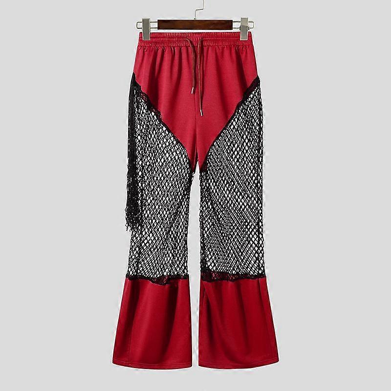 INCERUN Men Mesh Patchwork Pants High Waist Tassel See Through Trousers