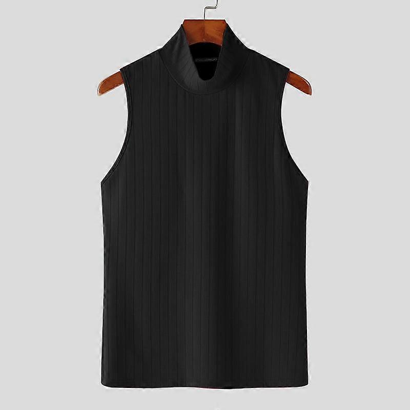 INCERUN Men Summer Mockneck Sleeveless Solid Color Vest Gym Fitness Tank Tops