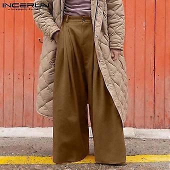 INCERUN Spring Mens Fashion Wide Leg Long Pants Pleating Solid Harem Yoga Hippie High Waist Casual Loose Maxi Trouser Plus Size