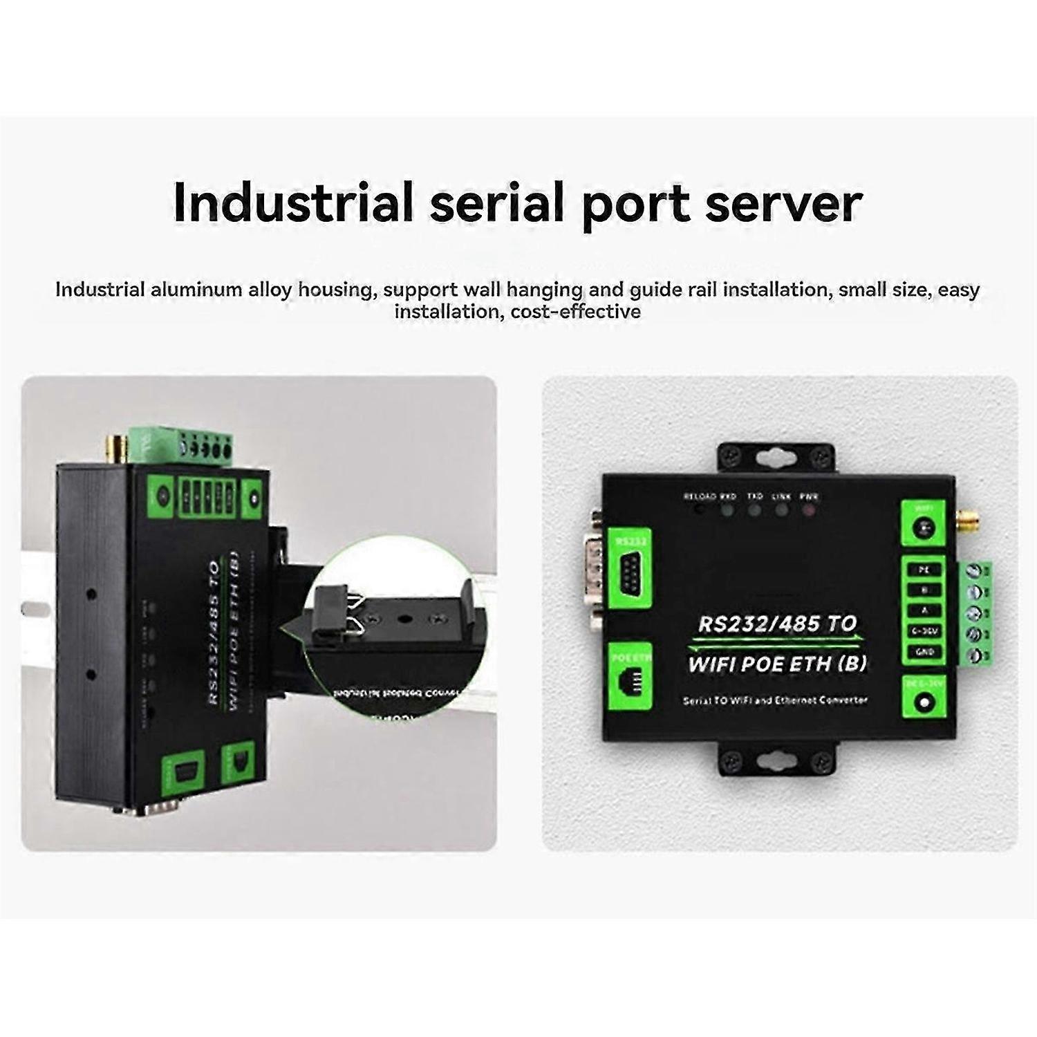 Industrial Grade Serial Server RS232/485 to WiFi and Ethernet Modbus Gateway, MQTT Gateway