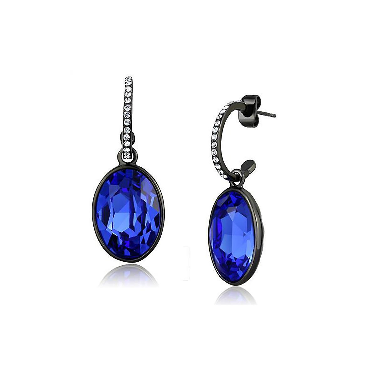 IP Black(Ion Plating) Stainless Steel Earrings with Top Grade Crystal in Sapphire for Women Sapphire Stone Color Style TK2538
