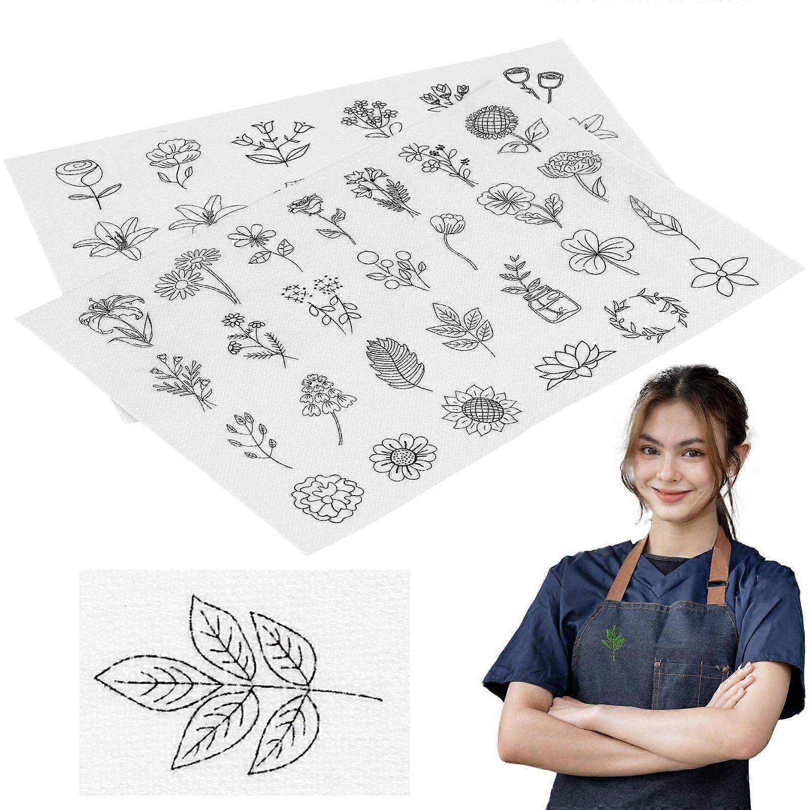 Iron On Transfer Patterns 2 Sheets Multi Color Water Soluble Fabric Designed For Embroidery Projects And Home Decoration