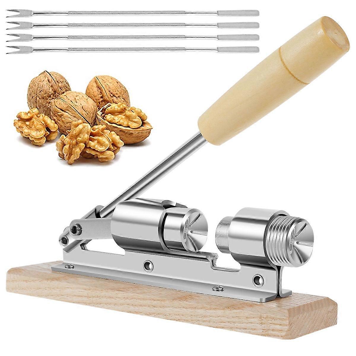 Jetcloudlive Pecan Nut Cracker Tool, Heavy Duty with Wood Handle & Fork, Adjustable Stainless Steel Nutcracker for Desktop