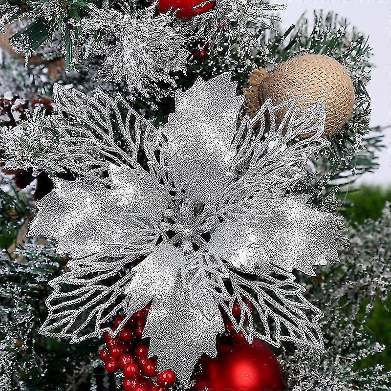 Jianghuo 5Pcs 9-16Cm Artificial Glitter Christmas Flowers Christmas Tree Decorations For Home Fake Flowers Christmas Ornaments New Year Decor