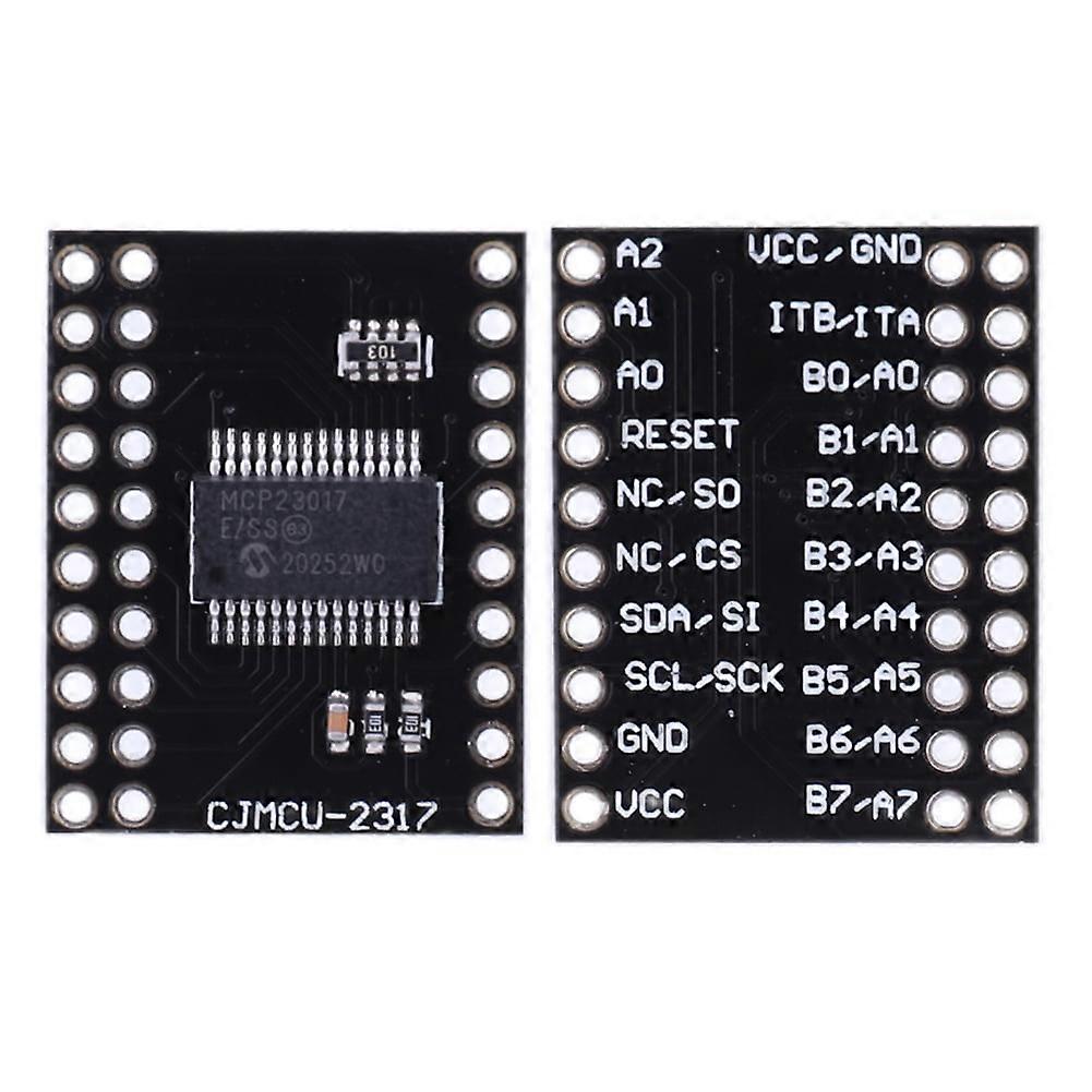 Specification: _x005f_x000D_ 1.16-Bit Remote Bidirectional Input/Output Port :- Input/Output Pins Default To Inputs _x005f_x000D_ 2. High Speed I2c Interface ( Mcp 23017 ) :- 100 Khz 400 Khz - 1.7 Mhz _x005f_x000D_ 3. High-Speed Spi Interface ( Mcp23 S17 ) : - 10 Mhz (Large Value) _x005f_x000D_ 4. Three Hardware Address Pins, Allowing Up To Eight Devices On The Bus _x005f_x000D_ 5. Configurable Interrupt Output Pins: - Can Be Configured As "Active-High", "Active-Low", Or Nulled Inta And Intb Can Be Configured To Run Independently Or Together. _x005f_x000D_ 6. Configurable Interrupt Sources: - Interrupt On Change From Configuration Register Default Or Pin Change Configured Sex Reversal Register Sex Of Input Port Data External Reset Inputs _x005f_x000D_ 7. Low Standby Current: 1μA (Large Value). ) _x005f_x000D_ 8. Operating Voltage: 1.8v To 5.5v _x005f_x000D_ - 1.8v To 5.5v @ - 40°C To + 85°C _x005f_x000D_ - 2.7v To 5.5v @ - 40°C To + 85°C _x005f_x000D_ Product Size: 27.00 X 21.00 X 4.00 mm/1.06 X 0.83 X 0.16 in _x005f_x000D_ Type: Module _x005f_x000D_ Condition: New _x005f_x000D_ _x005f_x000D_ Note: _x005f_x000D_ Due To The Different Monitor And Light Effect, The Actual Color Of The Item Might Be Slightly Different From The Color Showed On The Pictures. Thank You! _x005f_x000D_ Please Allow 1-2 cm Measuring Deviation Due To Manual Measurement. _x005f_x000D_ _x005f_x000D_ _x005f_x000D_ _x005f_x000D_ Included: _x005f_x000D_ 1 X MCP23017 Serial Interface Module 1. High Capacity I/O Pins: The MCP23017 serial interface module provides 16 configurable input/output pins, allowing you to expand the I/O capabilities of your main controller. It is perfect for applications that require control over multiple external devices or sensors. 2. Serial Interface: The MCP23017 communicates via the I2C serial interface, 10Mhz serial interface module offering a simple and resource-saving design. This makes it easy to integrate into various projects, providing seamless connectivity. 3. Simplified Configuration: With rich configuration options, the MCP23017 shield module allows you to control the input/output mode, interrupt triggering, pull-up/pull-down resistors, and default input state of the pins through register settings. This simplicity offers flexibility to meet the requirements of different applications. 4. Interrupt Functionality: The MCP23017 I2C IIC serial interface module features interrupt functionality, generating interrupt signals when the pin states change. This is particularly useful for real-time response to external events or input signals, enhancing system efficiency and responsiveness. 5. Wide Application Range: The MCP23017 I/O expander module is widely applicable and can be used in various projects, including robotics, home automation, sensor networks, and more. Its versatility and comprehensive features make it a valuable component for expanding I/O capabilities.
