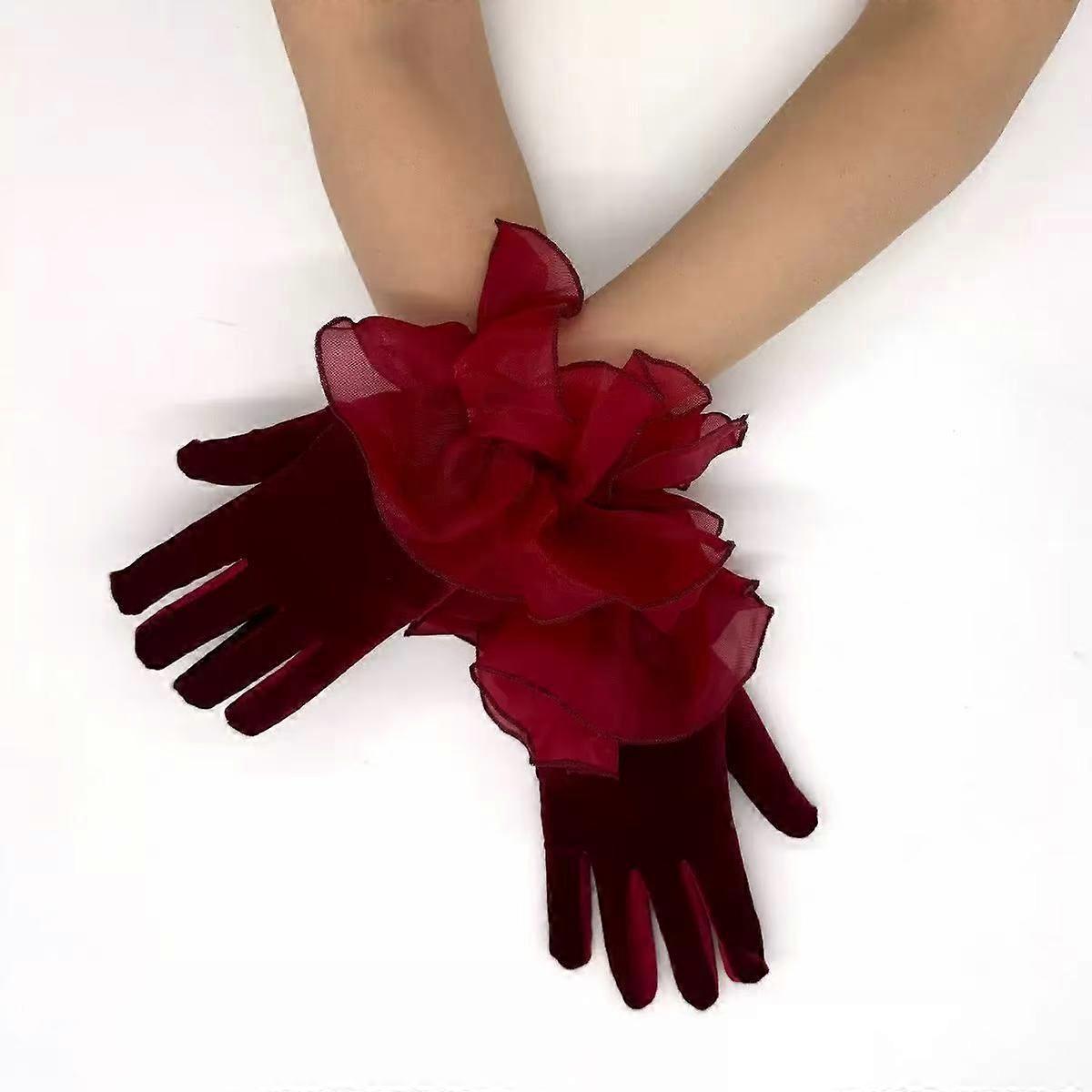 Christmas Wedding Gloves Red Short Feather Velvet Long Fur Cuff Gloves