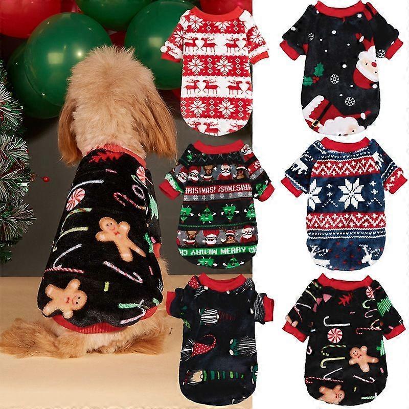 Christmas Dog Clothes Fleece-lined Warm Two-leg Sweater Pet Apparel Snowman Snowflake Print Pullover