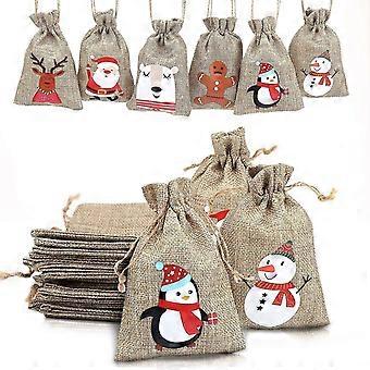 Jul Jute Sack, Gåva Jul Godis Väska 24 Stycken-MXBC