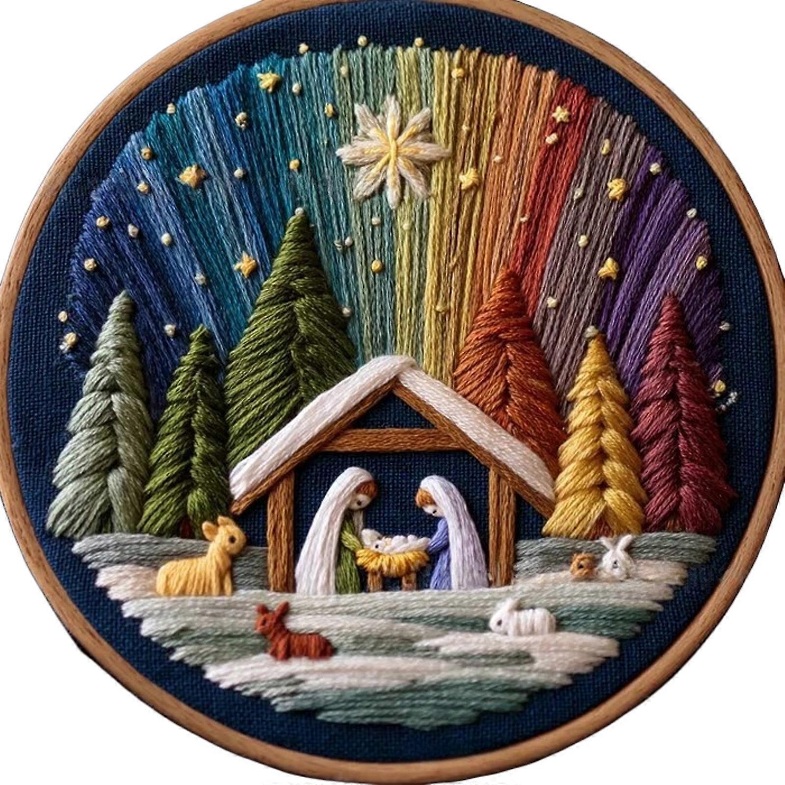Christmas Story Embroidery Craft Set Tool Fabric Hoop for Art Projects and Spiritual Home Accent Multicolor