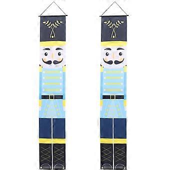 Christmas Celebration Nutcracker Door Decoration Rectangular Shape Polyester Material Festive Atmosphere 1 Pair