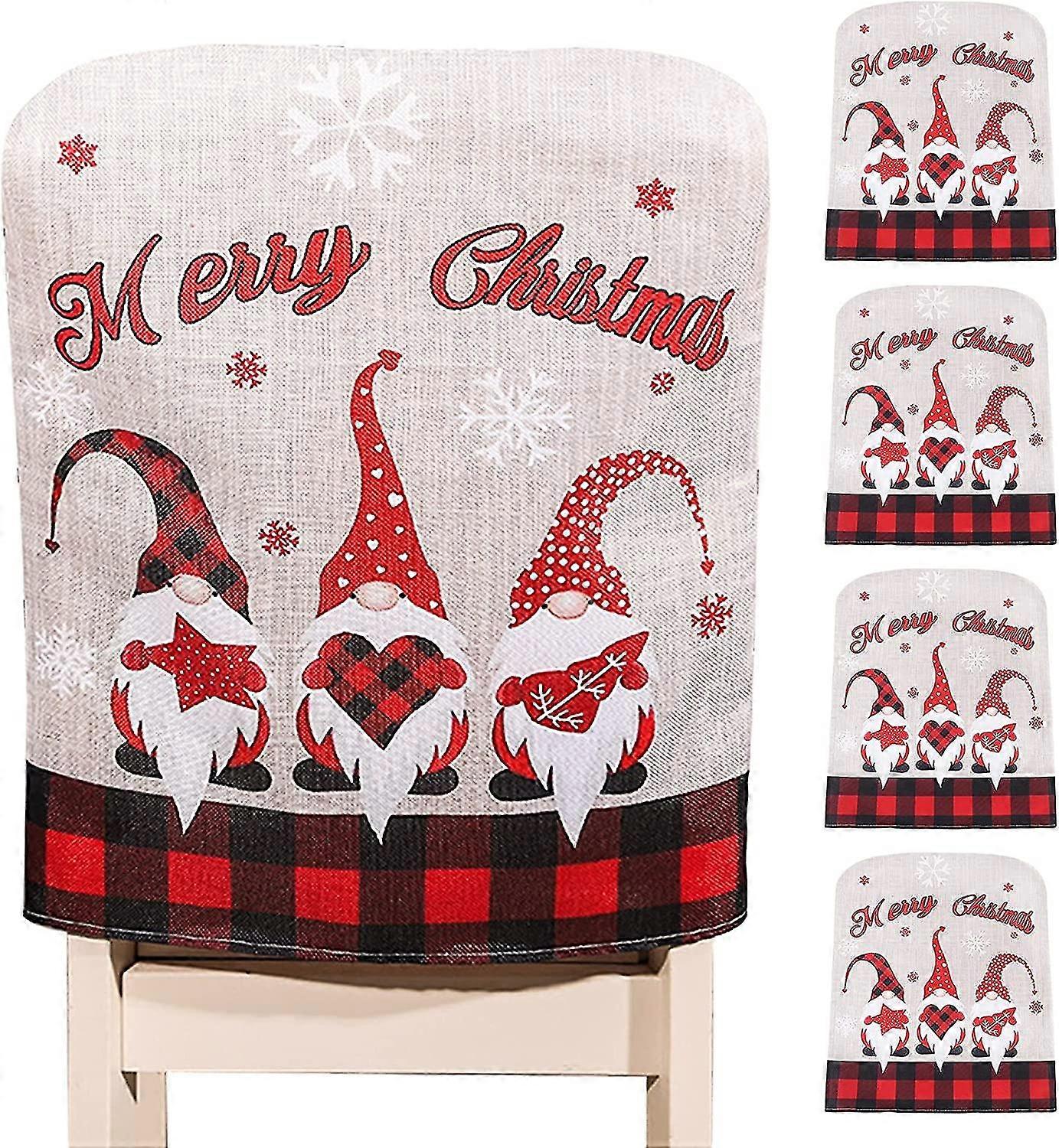 Christmas Chair Covers, 4 Pieces Santa Claus Chair Covers Christmas Chair Caps Christmas Chair Covers For Christmas Decoration Dinner Party Removable