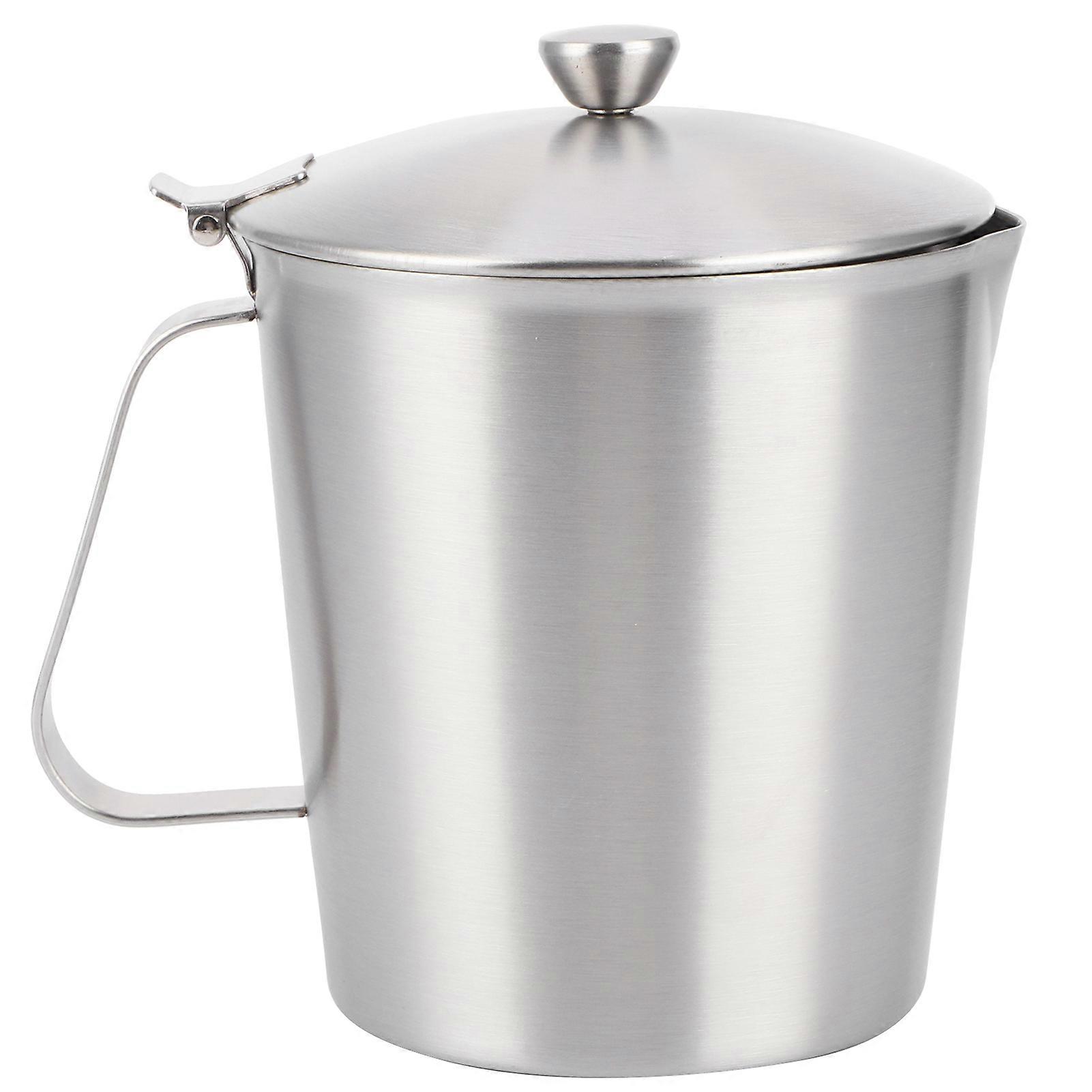 Coffee Latte Cup Thicken 304 Stainless Steel Measuring cup Milk Frothing Jug with Scale Cover1000ml with Cover