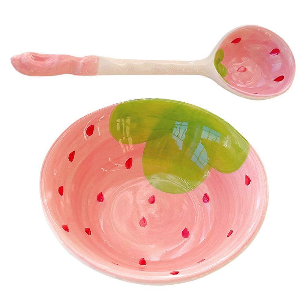 Food Serving Ceramic Bowl Spoon Kit for Home Use 5Sets Pink