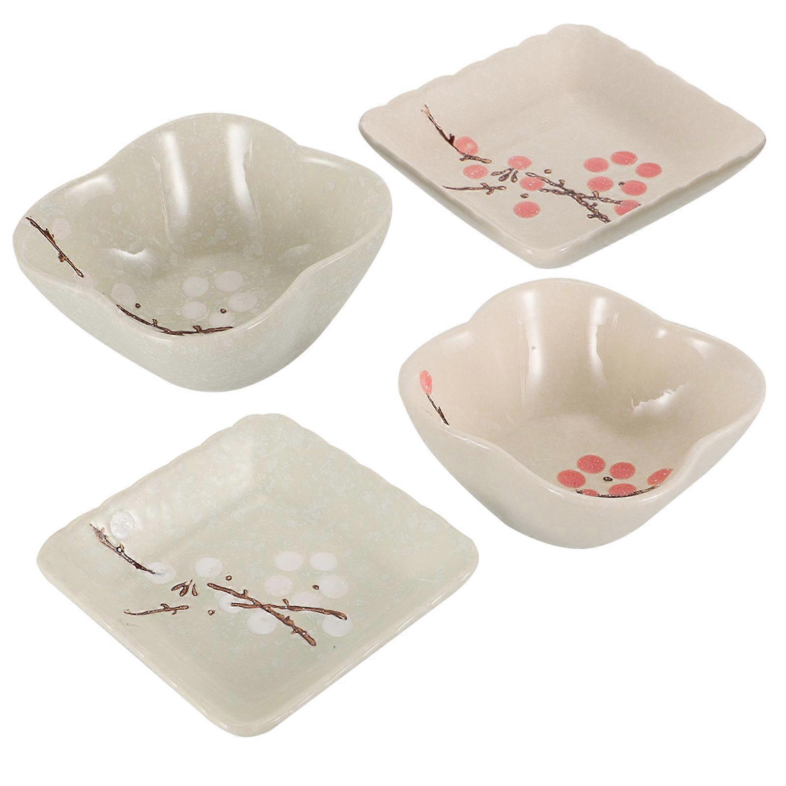 Ceramic Flavor Dish Plum Blossom Small Sauce Dishes Holding Vinegar 4Pcs