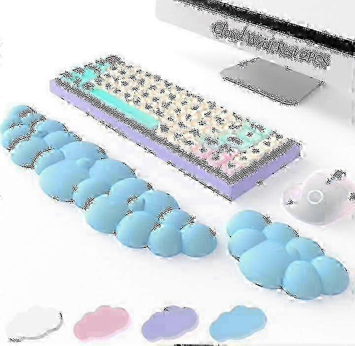 Keyboard Cloud Wrist Rest 2 Pieces, High Density Memory Foam Keyboard Palm Rest, Ergonomic Keyboard Pad Wrist Support, Pain Relief, Mouse Pad Sup