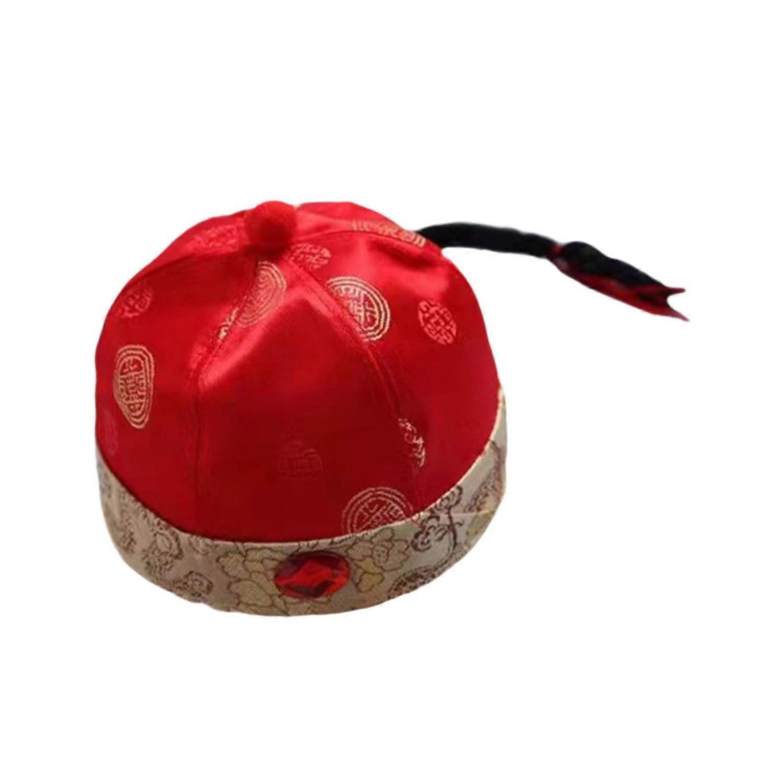 Chinese Oriental Hat Qing Silk with Ponytail for Fancy Dress Cosplay Performance