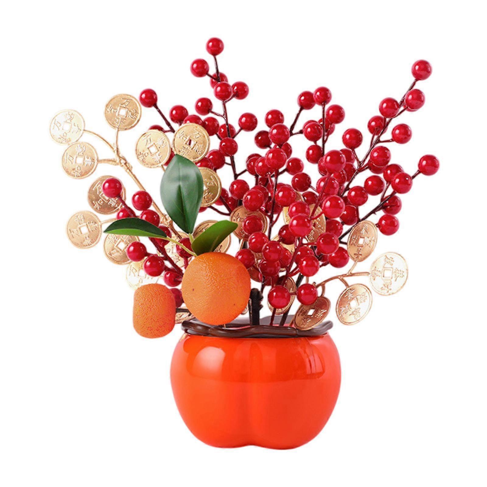 Chinese New Year Ornament Artificial Berry Branches Fake Flower Blessing Bucket