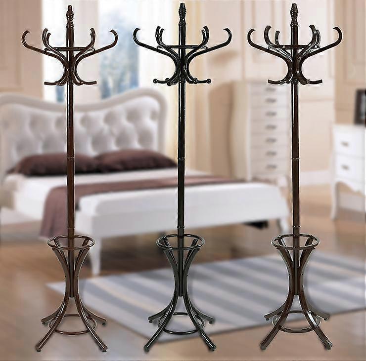 Coat Rack Stand 12 Hooks Wooden Walnut