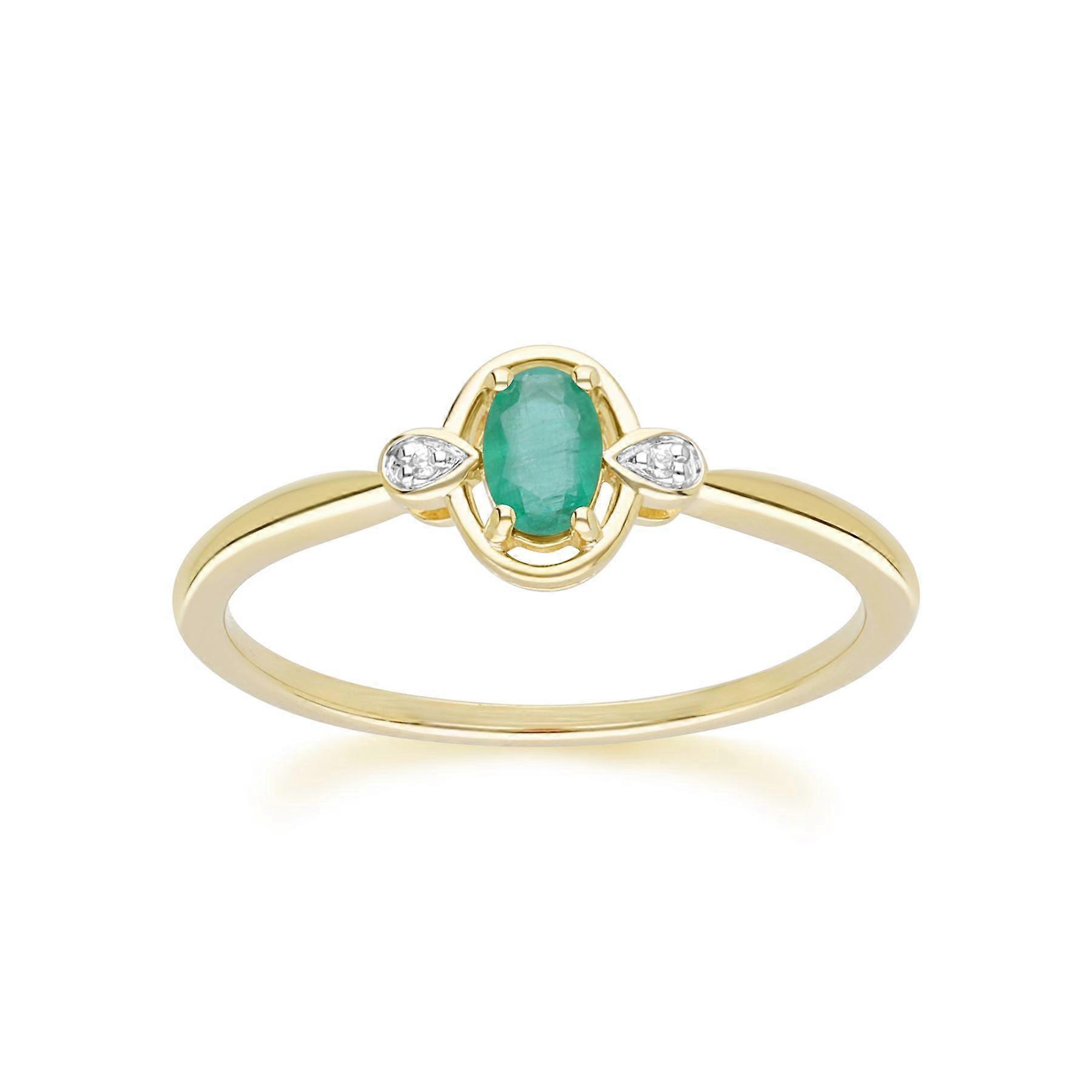 Classic Oval Emerald & Diamond Ring In 9ct Yellow Gold