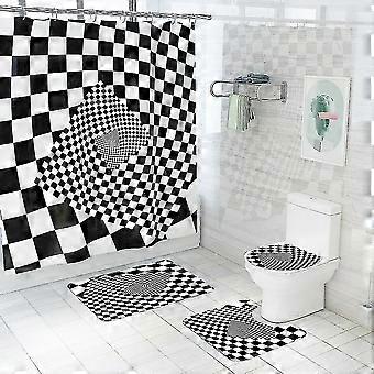 Klassisk rutig tryckt duschdraperi Toalettgolv Matta Duschdraperi i fyra delar